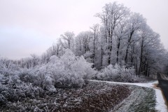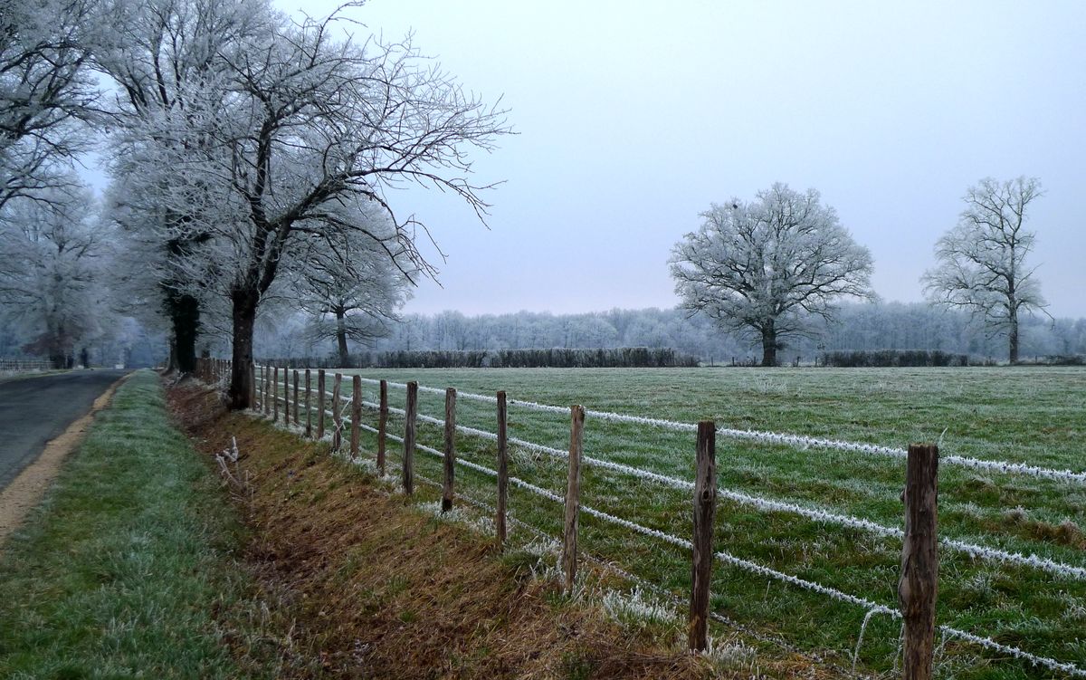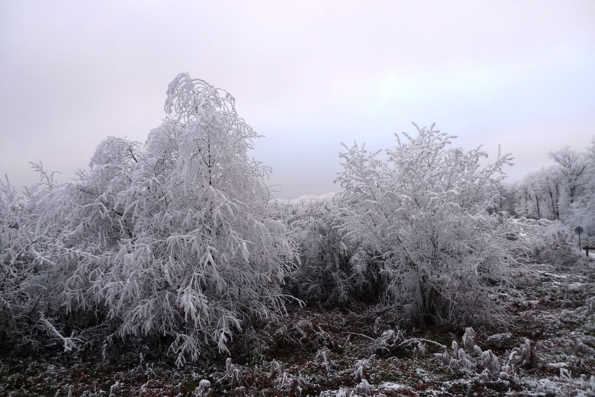 Du 4 au 6 janvier, le froid a saisi les plaines. Depuis le début des années 2000, on n'avait pas revu ça et la nature s'est habillée de glace sur tout ce qui se prélasse, dans champs et prairies, forêts, branches et herbes sont blanchies par un véritable hiver enfin revenu…